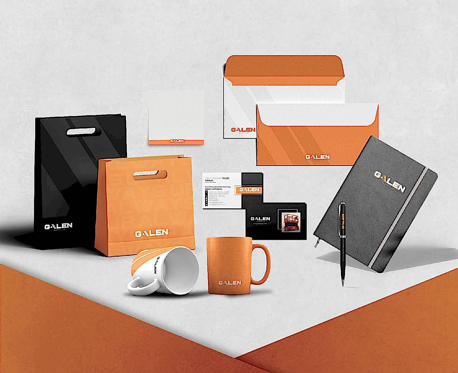 Bir markanın hikayesi, onun kurumsal kimliğiyle hayat bulur. Galen markasını dinamik ve güçlü bir kurumsal kimlik ile buluşturarak sektörde kendine özgü bir yer edinmesini sağladık. Turuncu ve siyah gibi çarpıcı renkleri kullanarak markanın enerjik ve etkileyici duruşunu yansıttık. Her detayı titizlikle planlanan kurumsal kimlik setimiz, profesyonellik ile estetiği bir araya getiriyor. Bu sayede Galen, sadece sektörde fark edilmekle kalmıyor, aynı zamanda güçlü bir izlenim bırakıyor.